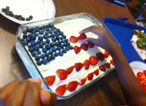 Our Burundi Women’s Group prepared for the celebration of our Freedom by creating a delicious Fourth of July Cake, decorated with yummy fresh strawberries and blueberries!